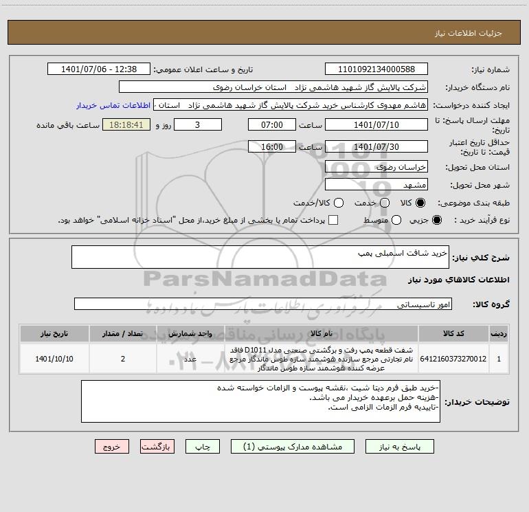 شرح کلی نیاز: خرید شافت اسمبلی پمپ