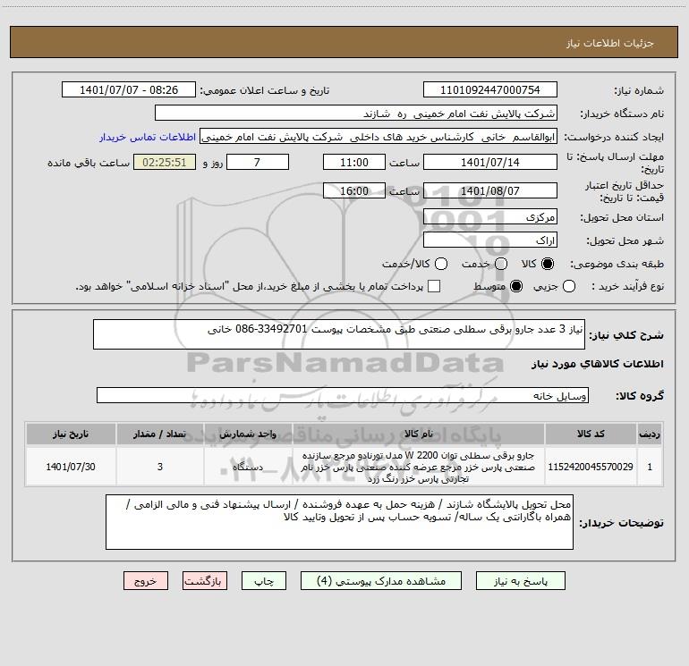 نام دستگاه خریدار:شرکت پالایش نفت امام خمینی ره شازند