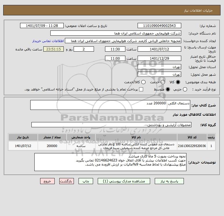 استعلام دستمال الکلی 200000 عدد, استعلام دستمال الکلی 200000 عدد