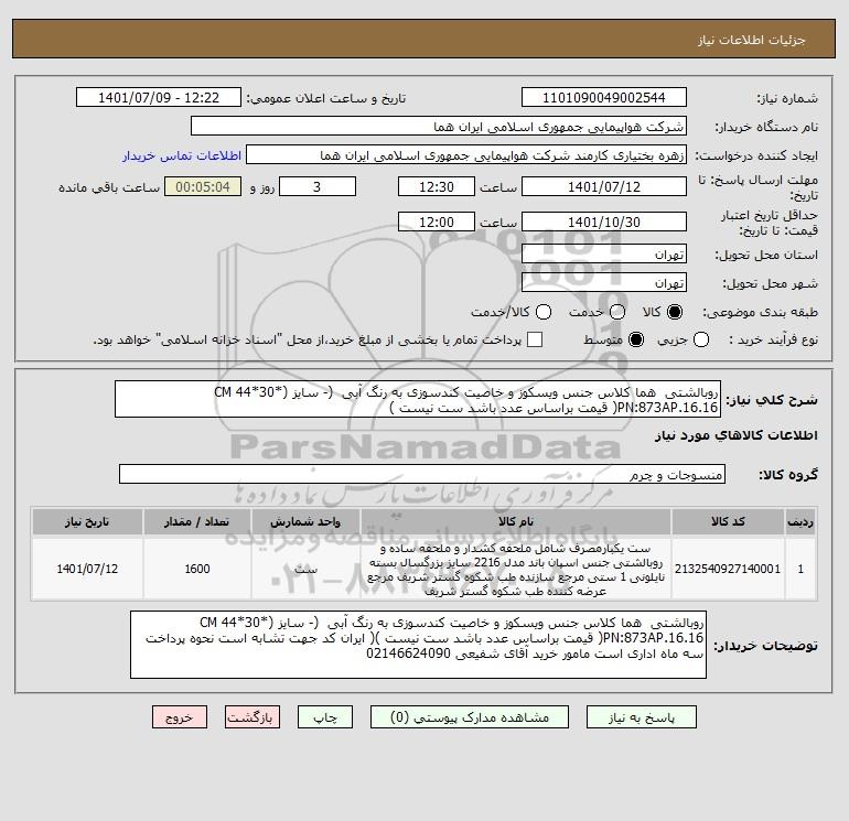نام دستگاه خریدار:شرکت هواپیمایی جمهوری اسلامی ایران هما