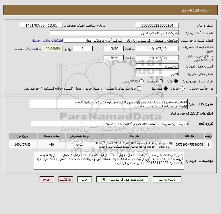 نام دستگاه خریدار:شرکت آب و فاضلاب اهواز