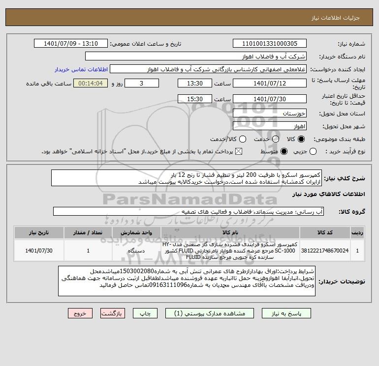 نام دستگاه خریدار:شرکت آب و فاضلاب اهواز
