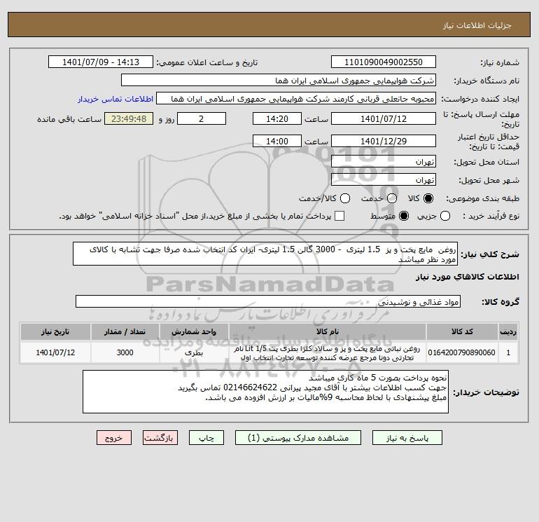 نام دستگاه خریدار:شرکت هواپیمایی جمهوری اسلامی ایران هما