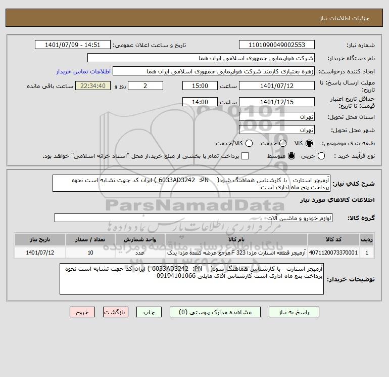 شرح کلی نیاز: آرمیچر استارت با کارشناس هماهنگ شود( 6033AD3242 :PN ) ایران کد جهت تشابه است نحوه پرداخت پنج ماه اداری است