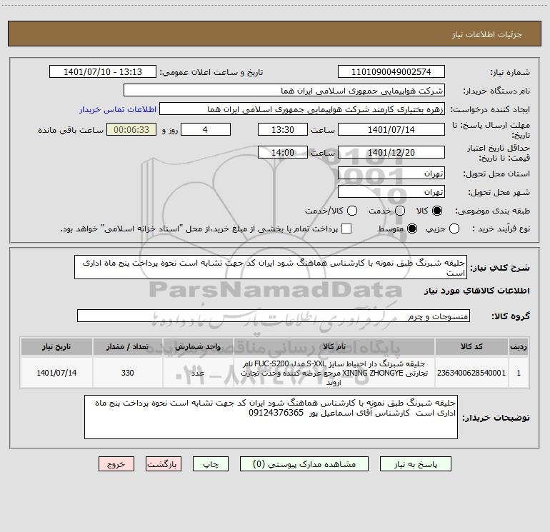 نام دستگاه خریدار:شرکت هواپیمایی جمهوری اسلامی ایران هما