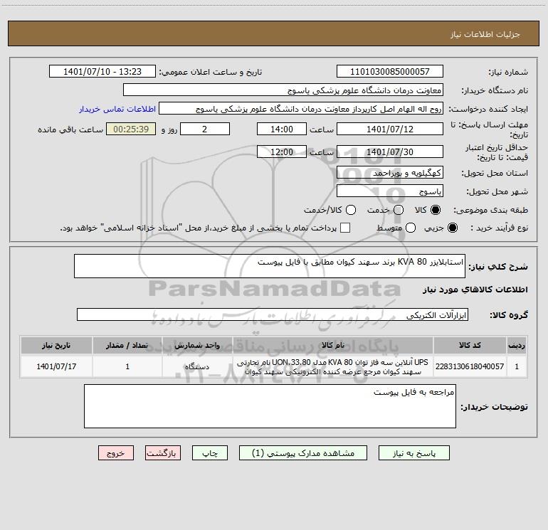 شرح کلی نیاز: استابلایزر 80 KVA برند سهند کیوان مطابق با فایل پیوست