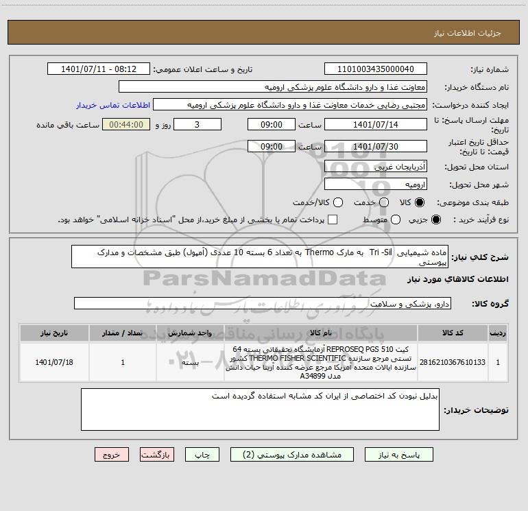 نام دستگاه خریدار:معاونت غذا و دارو دانشگاه علوم پزشکی ارومیه