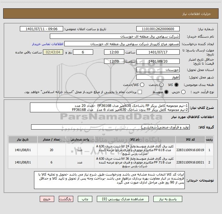 نام دستگاه خریدار:شرکت سهامی برق منطقه ای خوزستان