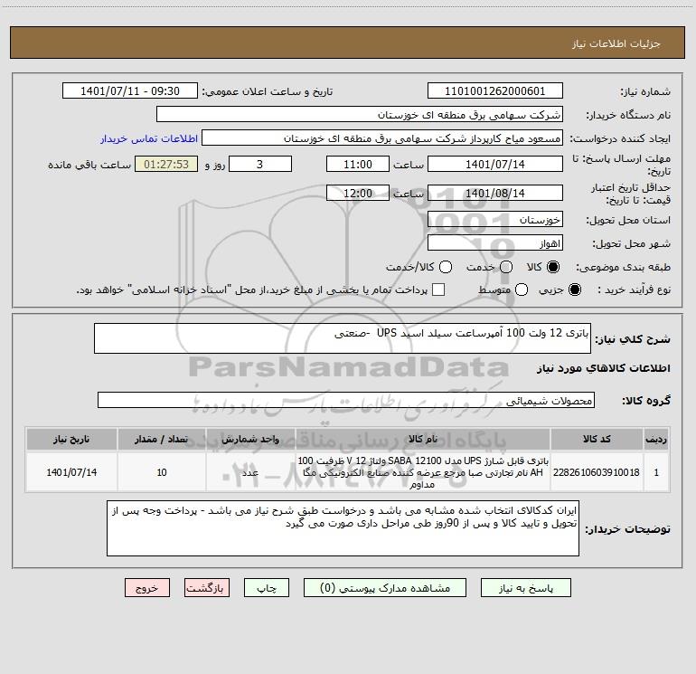 شرح کلی نیاز: باتری 12 ولت 100 آمپرساعت سیلد اسید UPS -صنعتی