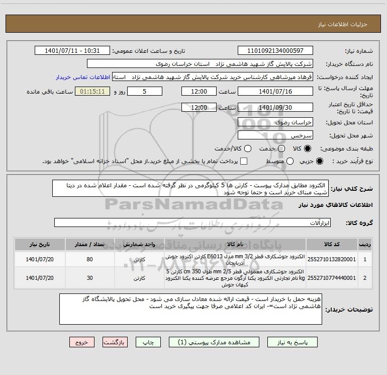 نام دستگاه خریدار:شرکت پالایش گاز شهید هاشمی نژاد استان خراسان رضوی