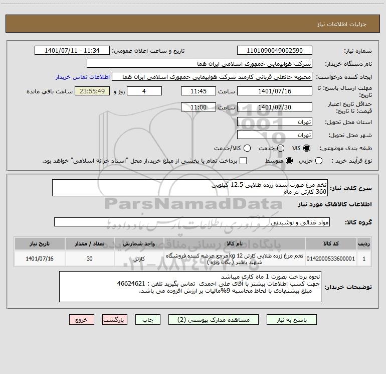 شرح کلی نیاز: تخم مرغ صورت شده زرده طلایی 12.5 کیلویی