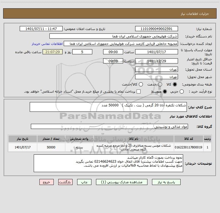نام دستگاه خریدار:شرکت هواپیمایی جمهوری اسلامی ایران هما