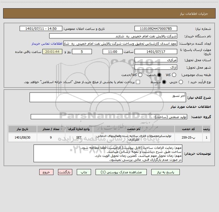 نام دستگاه خریدار:شرکت پالایش نفت امام خمینی ره شازند
