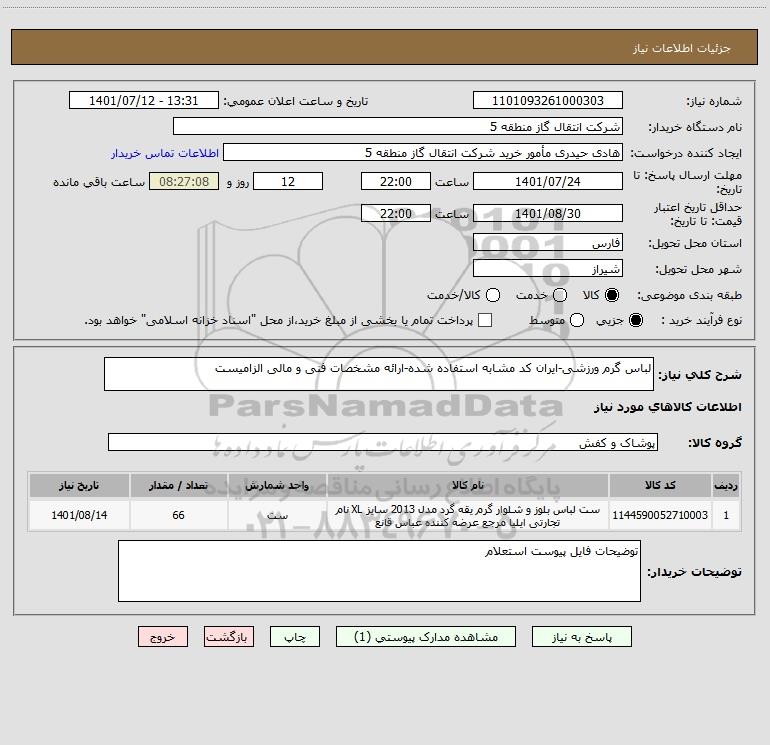 نام دستگاه خریدار:شرکت انتقال گاز منطقه 5