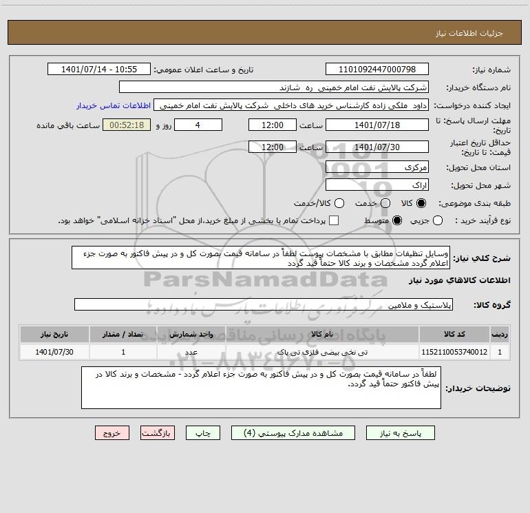 توضیحات خریدار: لطفاً در سامانه قیمت بصورت کل و در پیش فاکتور به صورت جزء اعلام گردد - مشخصات و برند کالا در پیش فاکتور حتماً قید گردد.