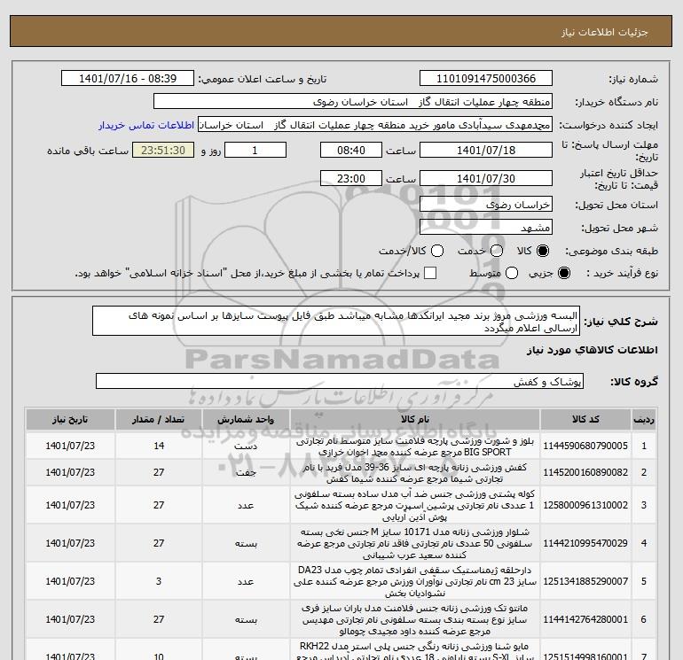 شرح کلی نیاز: البسه ورزشی مروژ برند مجید ایرانکدها مشابه میباشد طبق فایل پیوست سایزها بر اساس نمونه های ارسالی اعلام میگردد