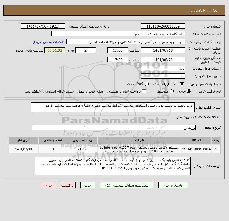 نام دستگاه خریدار:دانشگاه فنی و حرفه ای استان یزد