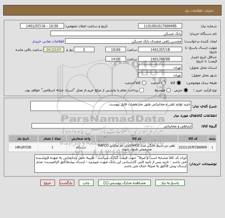 شرح کلی نیاز: خرید لوازم تلفن و مخابراتی طبق مشخصات فایل پیوست