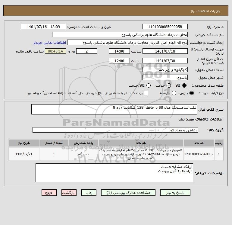نام دستگاه خریدار:معاونت درمان دانشگاه علوم پزشکی یاسوج