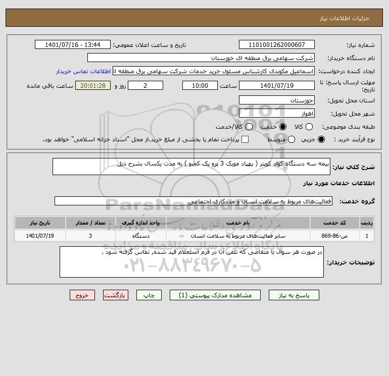 نام دستگاه خریدار:شرکت سهامی برق منطقه ای خوزستان