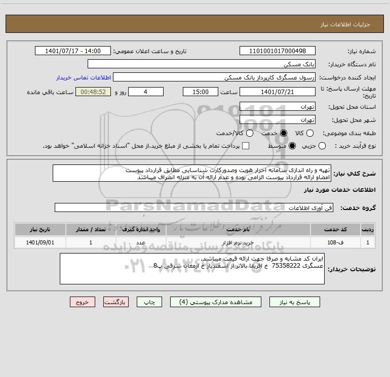استعلام تهیه و راه اندازی سامانه احزار هویت وصدورکارت شناسایی مطابق قرارداد پیوست امضاو ارائه قرارداد پیوست الزامی بوده و عدم ارائه آن به منزله انصراف میباشد, استعلام تهیه و راه اندازی سامانه احزار هویت وصدورکارت شناسایی مطابق قرارداد پیوست امضاو ارائه قرارداد پیوست الزامی بوده و عدم ارائه آن به منزله انصراف میباشد