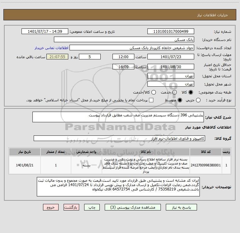 شرح کلی نیاز: پشتیبانی 396 دستگاه سیستم مدیریت صف شعب مطابق قرارداد پیوست