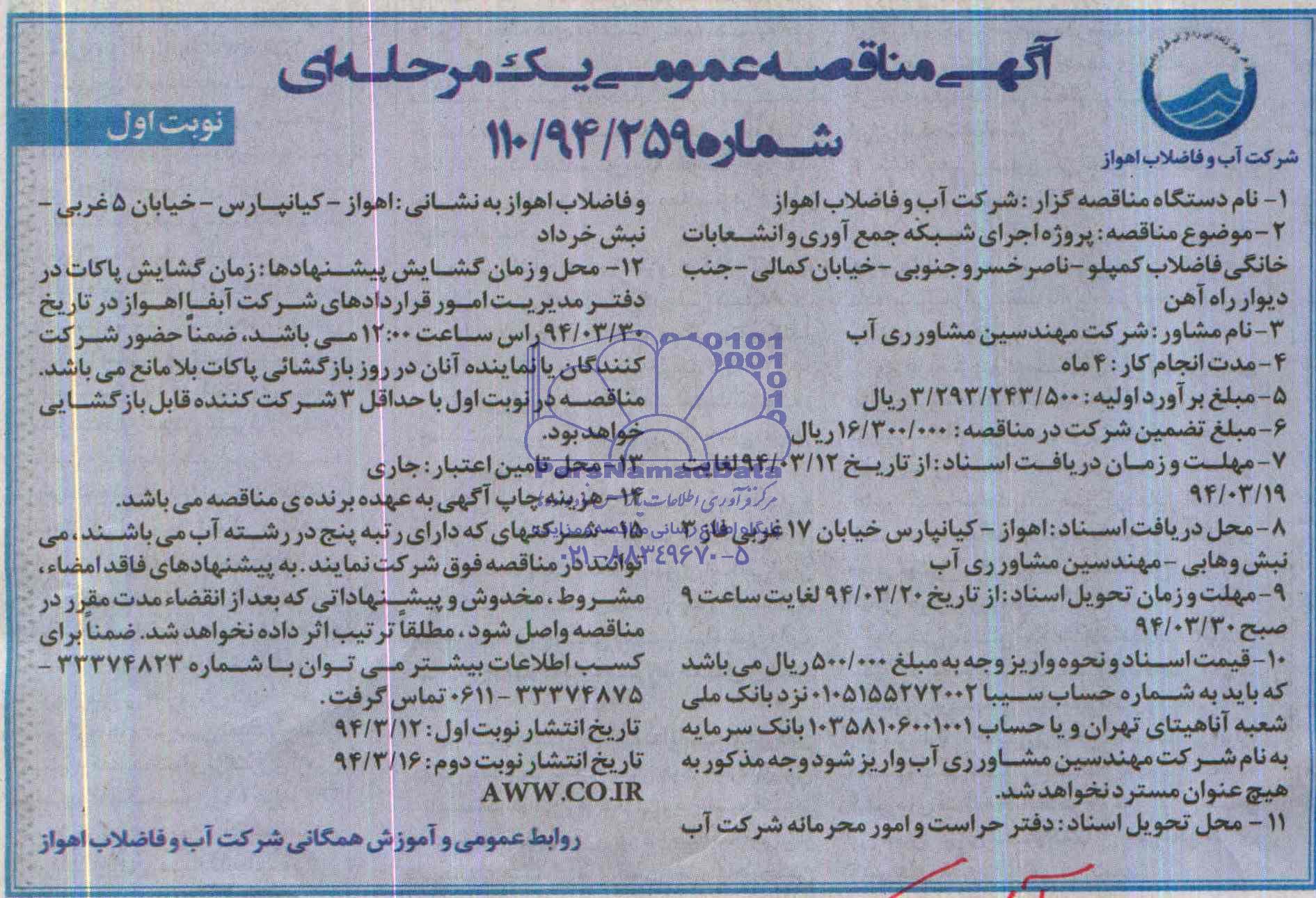 نام دستگاه مناقصه گزار: شرکت آب و فاضلاب اهواز