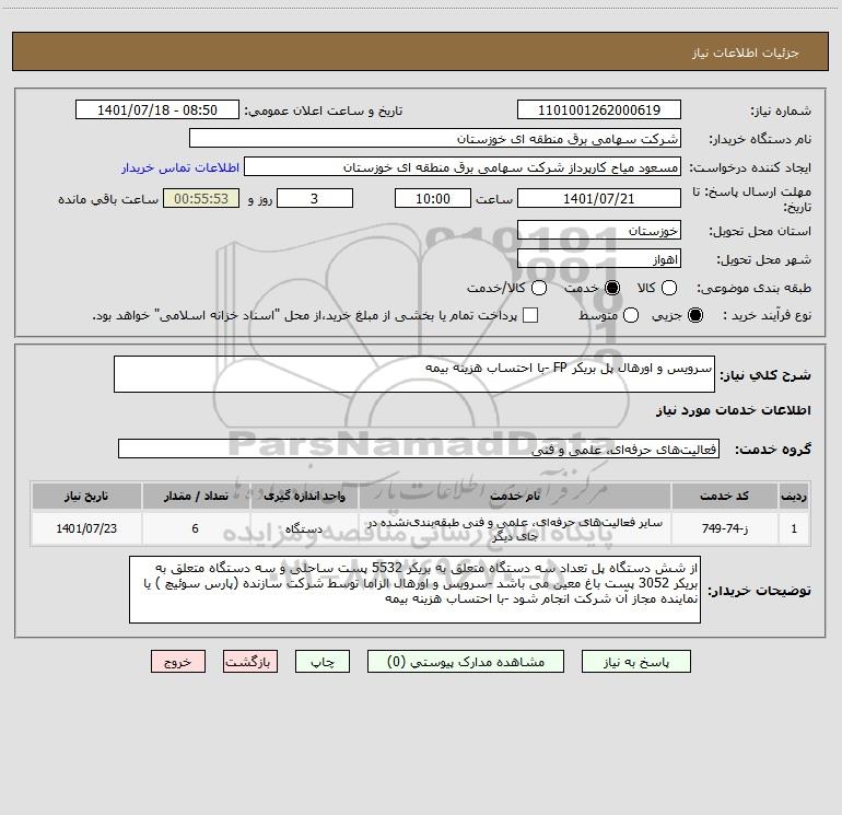 استعلام سرویس و اورهال پل بریکر FP -با احتساب هزینه بیمه, استعلام سرویس و اورهال پل بریکر FP -با احتساب هزینه بیمه