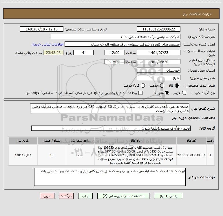 نام دستگاه خریدار:شرکت سهامی برق منطقه ای خوزستان