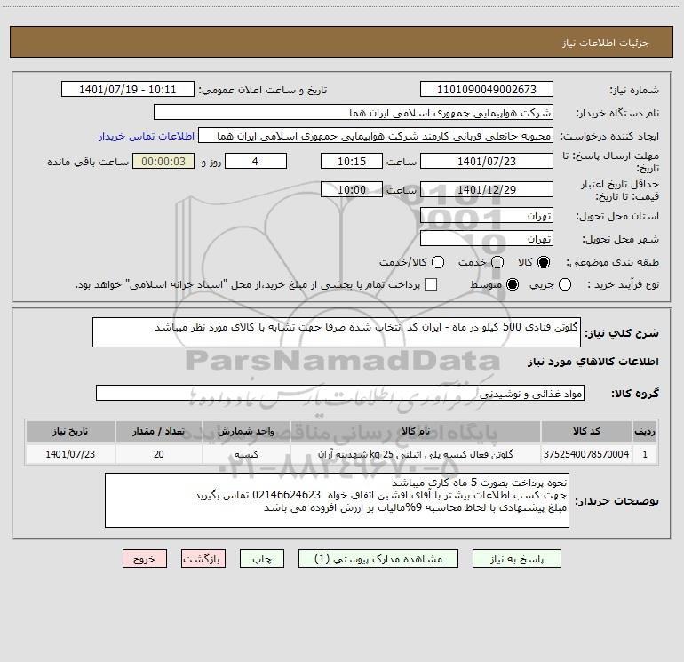 نام دستگاه خریدار:شرکت هواپیمایی جمهوری اسلامی ایران هما