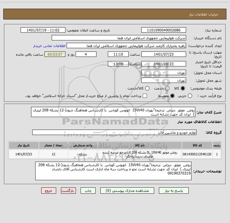 نام دستگاه خریدار:شرکت هواپیمایی جمهوری اسلامی ایران هما