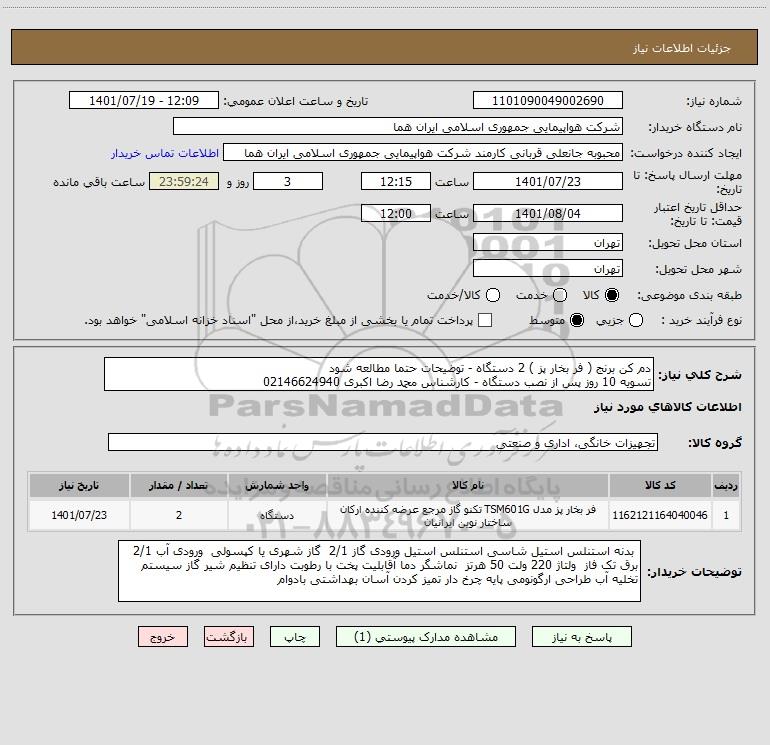 نام دستگاه خریدار:شرکت هواپیمایی جمهوری اسلامی ایران هما