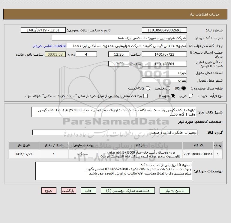 نام دستگاه خریدار:شرکت هواپیمایی جمهوری اسلامی ایران هما