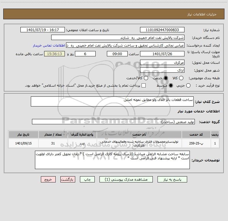 توضیحات خریدار:سابقه ساخت مشابه الزامی میباشد (ارسال رزومه کاری الزامی است ) * زمان تحویل کمتر دارای اولویت است * ارایه پیشنهاد فنی الزامی است *