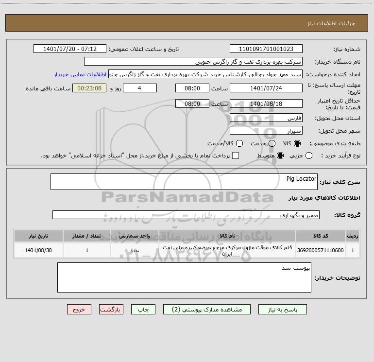 نام دستگاه خریدار:شرکت بهره برداری نفت و گاز زاگرس جنوبی