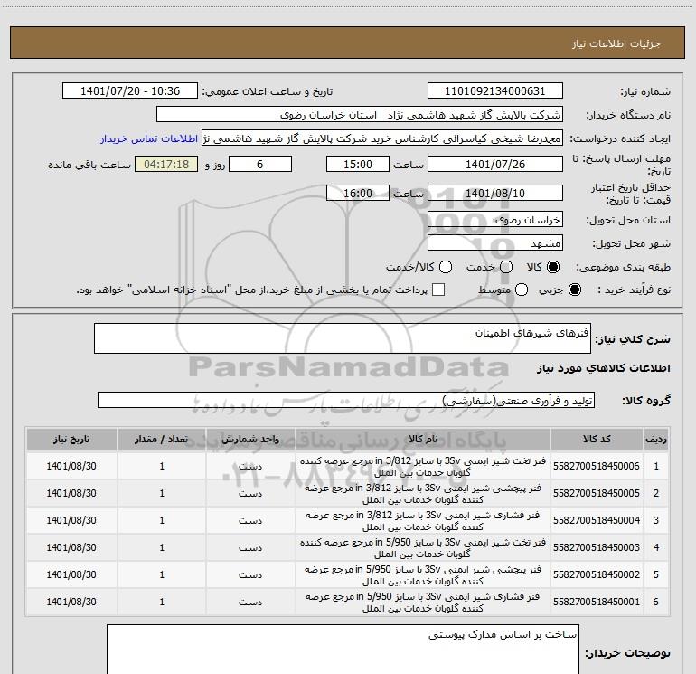 نام دستگاه خریدار:شرکت پالایش گاز شهید هاشمی نژاد استان خراسان رضوی