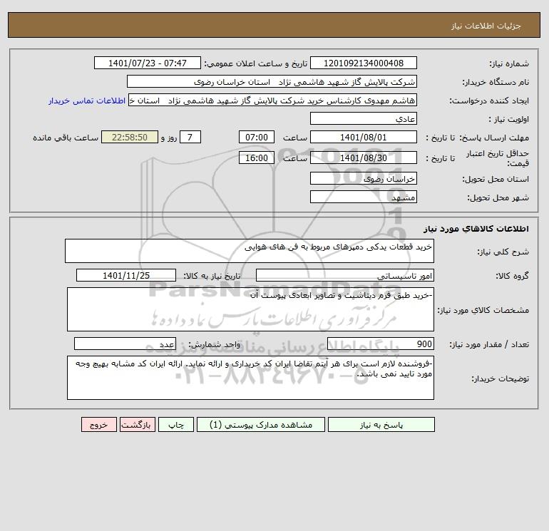 نام دستگاه خریدار:شرکت پالایش گاز شهید هاشمی نژاد استان خراسان رضوی