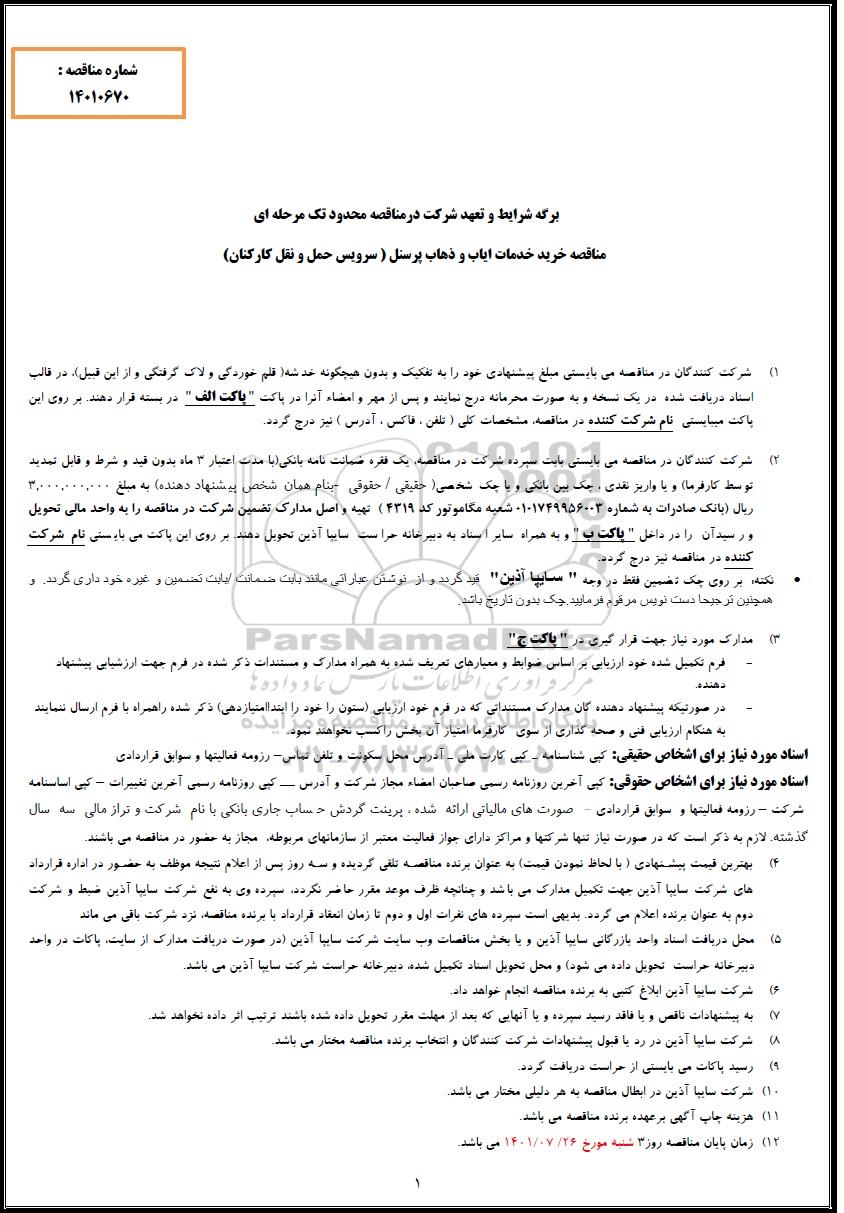 مناقصه خرید خدمات های ایاب و ذهاب (سرویس حمل و نقل کارکنان)