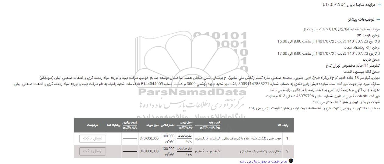 مزایده محدود شماره 01/05/2/04 شرکت سایپا دیزل