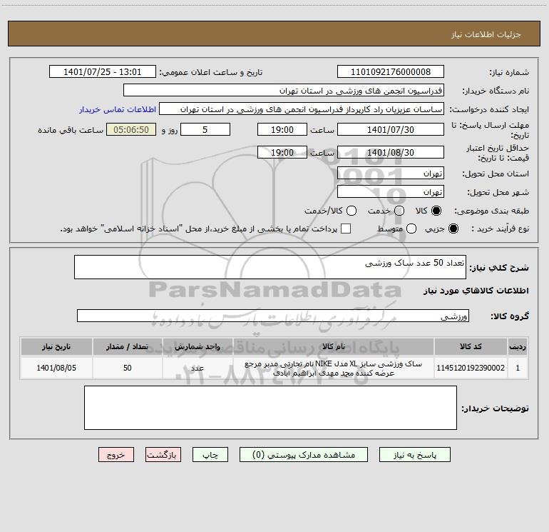 نام دستگاه خریدار:فدراسیون انجمن های ورزشی در استان تهران
