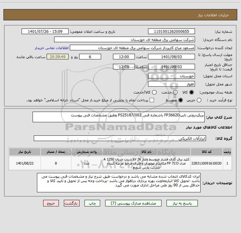نام دستگاه خریدار:شرکت سهامی برق منطقه ای خوزستان