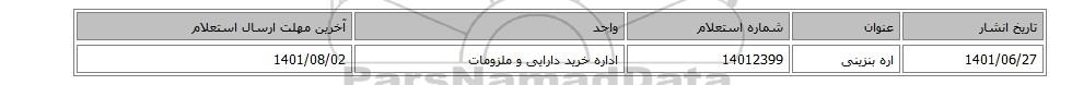 | 1401/06/27 | اره بنزینی | 14012399 | اداره خرید دارایی و ملزومات | 1401/08/02 |