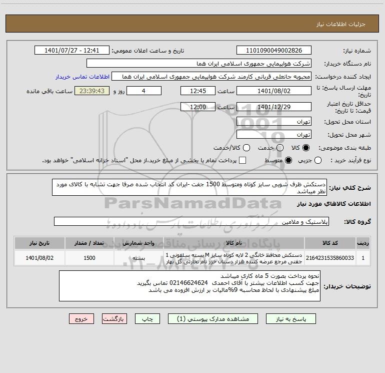 نام دستگاه خریدار:شرکت هواپیمایی جمهوری اسلامی ایران هما