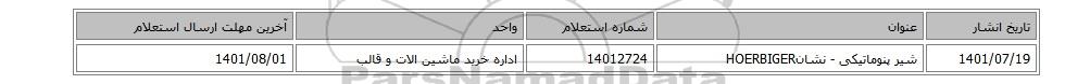 1401/07/19شیر پنوماتیکی - نشانHOERBIGER14012724اداره خرید ماشین الات و قالب1401/08/01