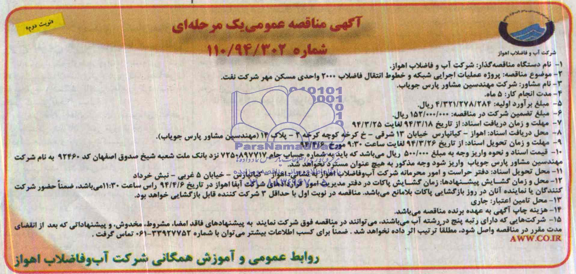موضوع مناقصه پروژه عملیات اجرایی شبکه و خطوط انتقال فاضلاب 2000 واحدی مسکن مهر شرکت نفت