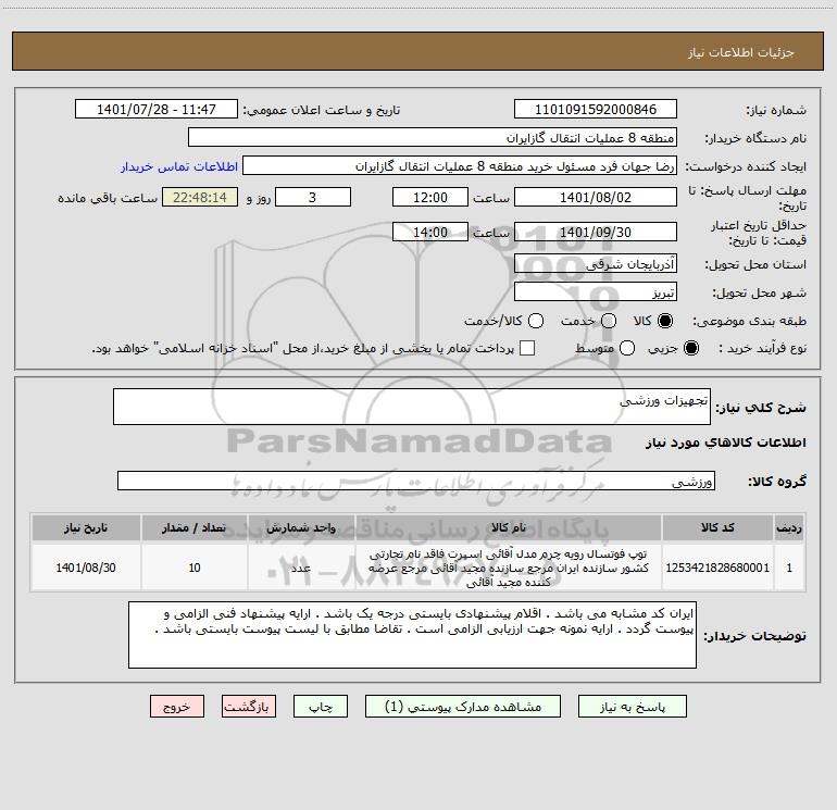 نام دستگاه خریدار:منطقه 8 عملیات انتقال گازایران