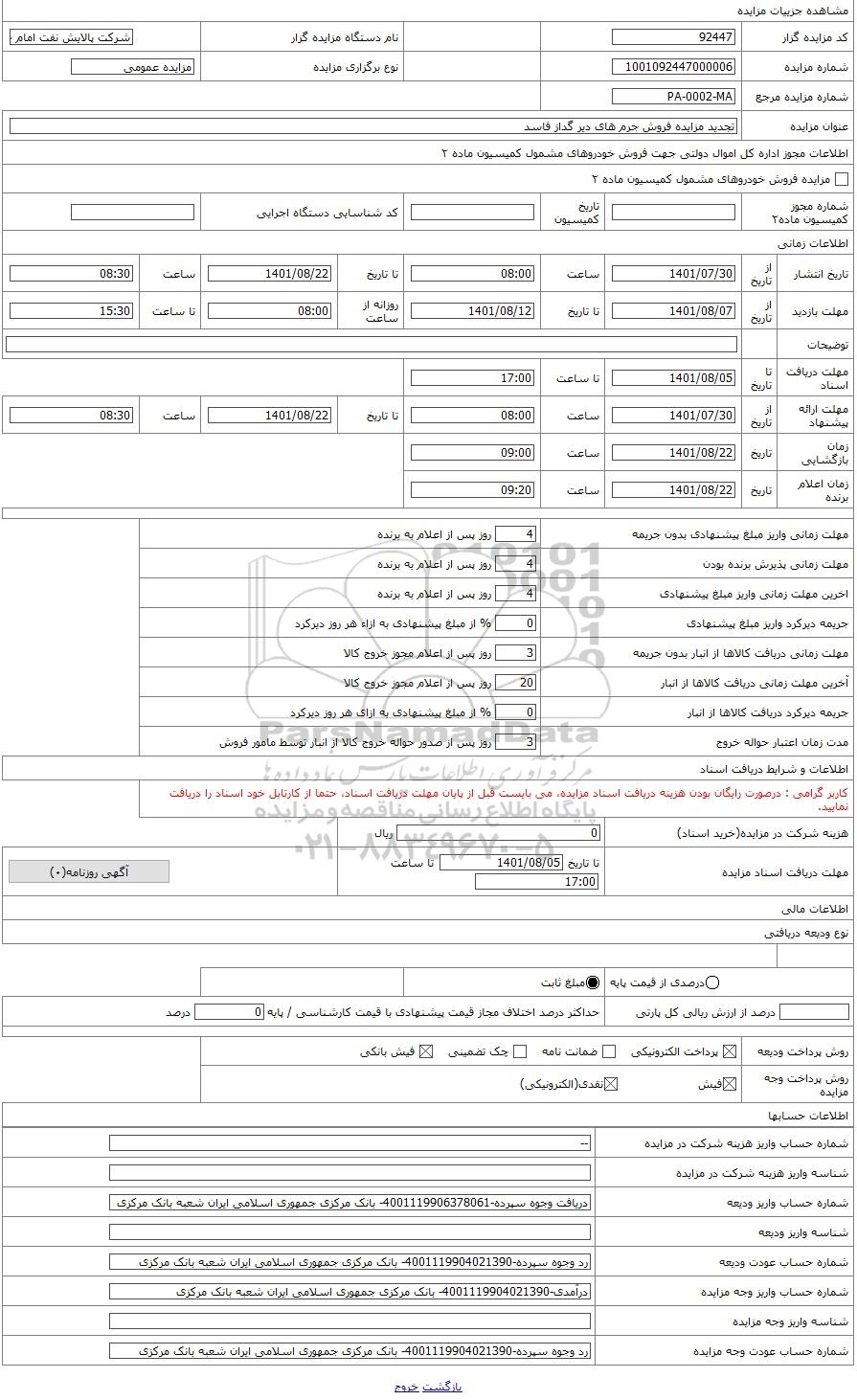 شماره پارتی1101092447000006نوع برگزاری مزایده مزایده عمومی
