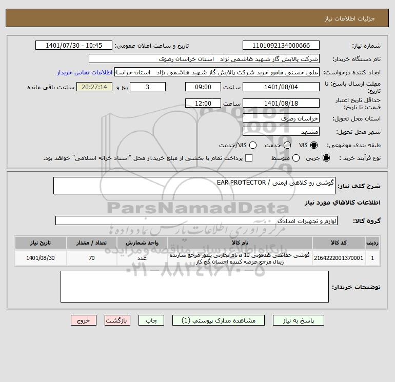 نام دستگاه خریدار:شرکت پالایش گاز شهید هاشمی نژاد استان خراسان رضوی