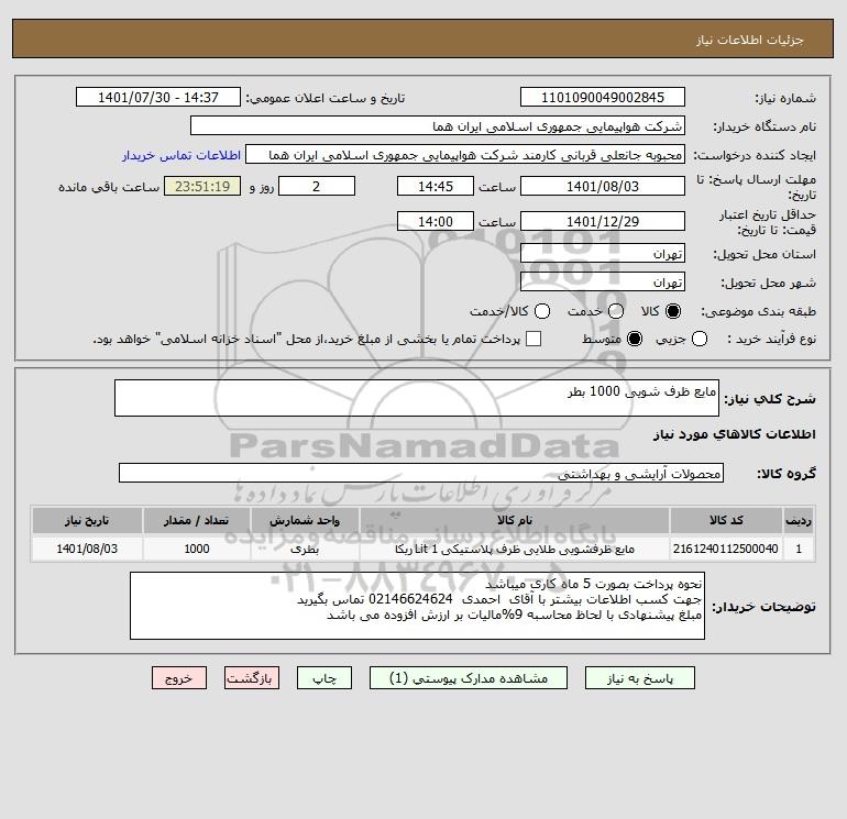 شرح کلی نیاز: مایع ظرف شویی 1000 بطر