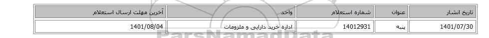 | تاریخ انشار | عنوان | شماره استعلام | واحد | آخرین مهلت ارسال استعلام |